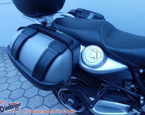 Brembo Bremsanlage, Blinkergläser weiß, Auspuffanlage Edelstahl, Gepäckbrücke, Gepäckträger, Koffer, Kofferhalter, STAHLFLEX Bremsleitung, Topcase.