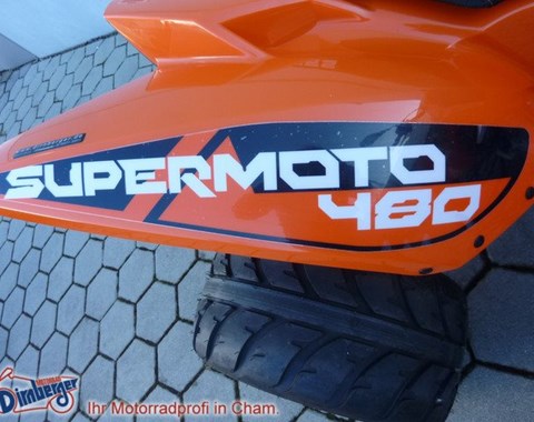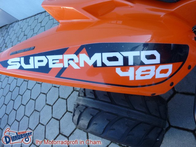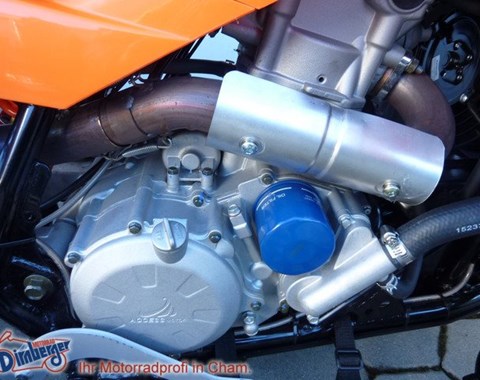Anhängerkupplung (AHK), Blinkergläser weiß, Auspuffanlage Edelstahl, Endurofußrasten, STAHLFLEX Bremsleitung, Supermoto Umbau.